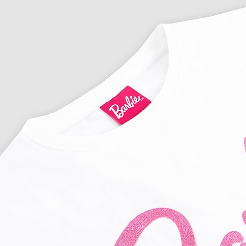 Iconic Barbie Style: This Barbie short and t-shirt set features a chic white short sleeve tee with a sparkling pink Barbie logo and trendy cycling shorts with an all-over Barbie print. A 2-piece set perfect for little fashionistas' collection of girls' clothing
