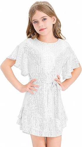 Comment on "Batermoon Girls' Sequin Dress Crew Neck Bat Sleeve Ruffle Party Wedding Flower Dress with Belt for 5-14 Years(Sliver,10-11 Years)"