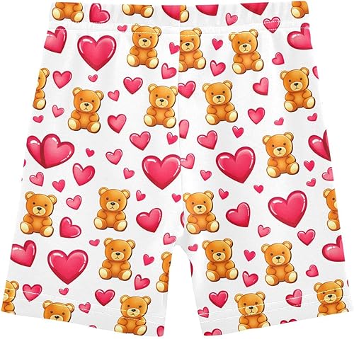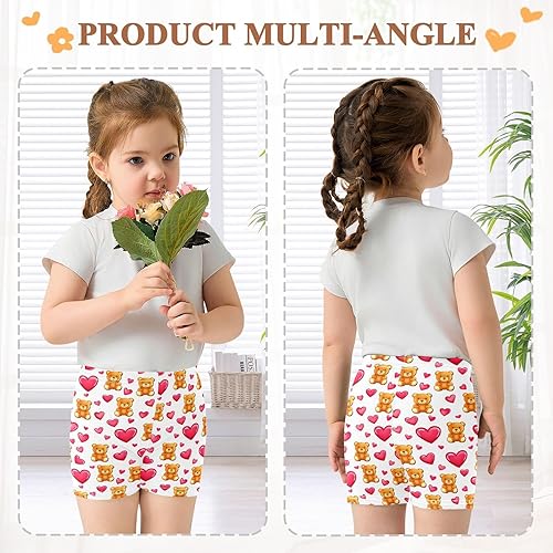 Bear Hearts Red Girls Bike Shorts Toddler Soft Cotton Under Dress Dance Shorts(Multi-bear Hearts Red,8 Years)