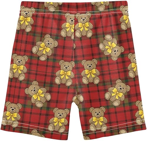 Bear Plaid Red Girls Bike Shorts Toddler Soft Cotton Cartwheel Under Dress Dance Shorts(Multi-bear Plaid Red,10 Years)