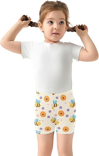 Bee Flower Beige Girls Bike Shorts Toddler Soft Cotton Under Dress Dance Shorts(Multi-bee Flower Beige,10 Years)