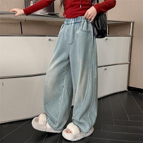 Betadog Girls Cargo Pants Girls Wide Leg Pants Elastic High Waisted Knit Casual Pants Trousers with Pockets(Light Blue,11-12 Years)