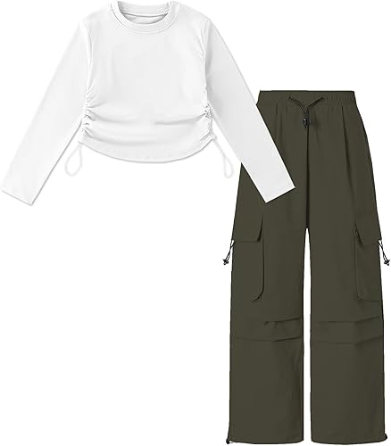 Design: Black Cute Cold Long Sleeve Crop Tops + High-Rise Elastic Waist Camo Cargo Sweatpants