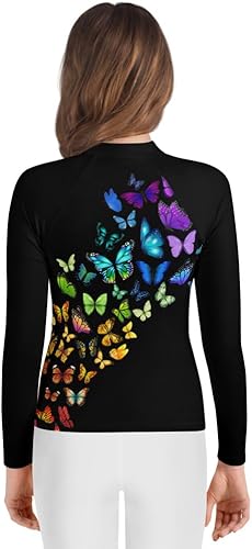 Big Girls Butterfly Jiu Jitsu Rash Guard – Long Sleeve BJJ Shirt for Kids, Youth Grappling Compression No-Gi Rash Guard(16)