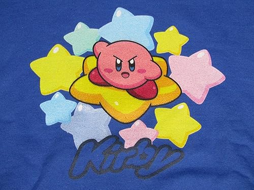 GRAPHIC DESIGN: Kirby rides a yellow warp star in the graphic design on this sweatshirt while green,pink, blue, and yellow stars appear around him. Fans of the Kirby games will love this fun character design.