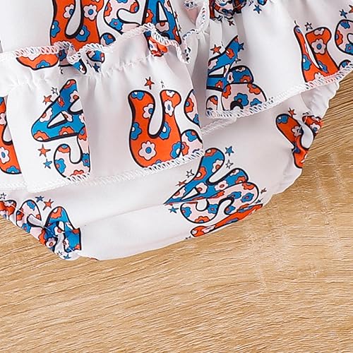 Birthday Jumpsuit for Children Infant Girls Independence Day 4 Of July Short Sleeve Letter Cartoon Printed(Red,3-6 Months)