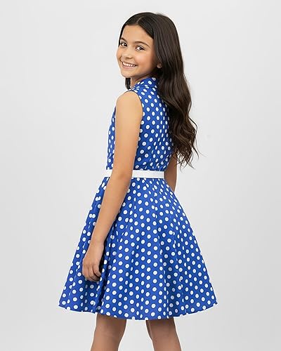 BlackButterfly Kids 'Holly' Vintage Polka Dot 50's Girls Dress(Royal Blue,9-10 Years)