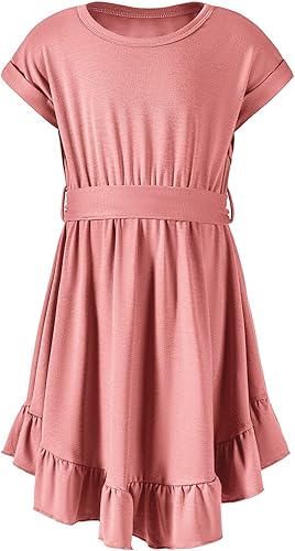 FEATURE: Our dresses are designed in a solid color with a round neck and short sleeves. There is a adjustable belt at the waist.