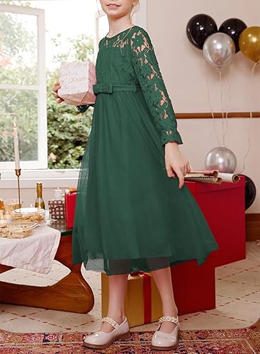FEATURES: This girls fancy dresses features a crew neck, puff lace long sleeve, bow tie belt. Its suitable for your kids to wear in any special occasiaons.