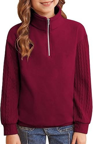 FEATURES: This girls fashion sweatshirt features a half zipper lapel, patchwork long sleeves with drop shoulder design. With its loose fit, its suitable for your kids to wear in daily.