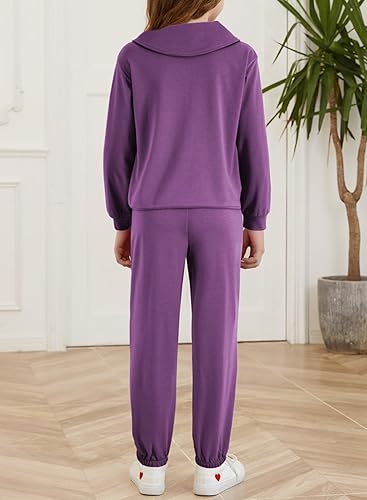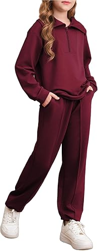DESIGN: This girl's 2pcs pants clothes set features a half open collar design and a solid color cotton knit design. It is both fashionable and casual