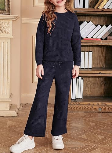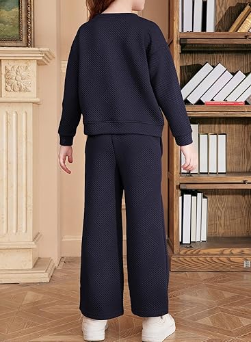 FEATURES: 2 piece sweatsuits, casual clothes sets, crewneck sweat outfits, rib knit design, long sleeve pullover top, wide leg pants with elastic waist and drawstrings, two side pockets, solid color, and oversized loose fitting, to create a relaxed and slouchy silhouette. This girls active tracksuit is a versatile addition to your girl's wardrobe