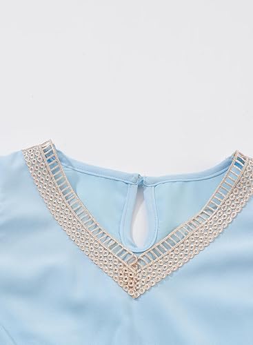 FEATURE: It features a contrast lace trim v neck and bow belted with hollow out design that is stylish. (Notice: The bow belt needs to be tied by yourself. )