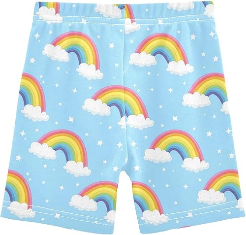 Blue Rainbow Girls Bike Shorts Toddler Soft Cotton Cartwheel Under Dress Dance Shorts(Multi-blue Rainbow,10 Years)