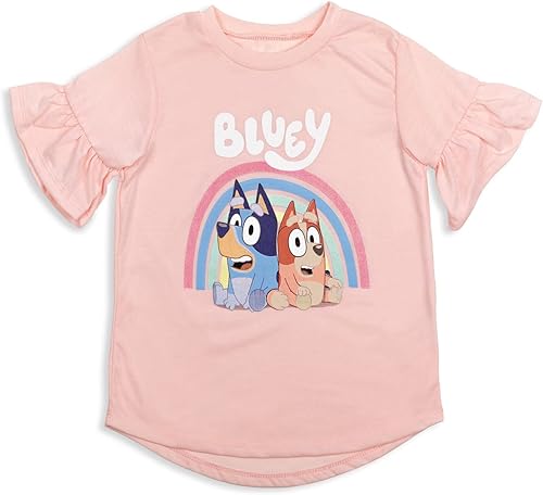BBC Bluey little girls cute and stylish short sleeve graphic tee shirt, matching leggings, and elastic hair scrunchie
