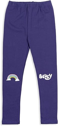 Featuring Bluey the Heeler pup and her little dog sister Bingo in awesome digital print art on top; Fun screen print designs of a rainbow and the Bluey show logo on pant knees
