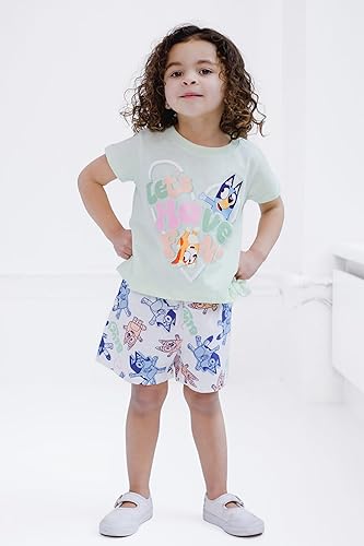 Officially licensed Bluey Bingo little girls short sleeve graphic tee shirt and shorts