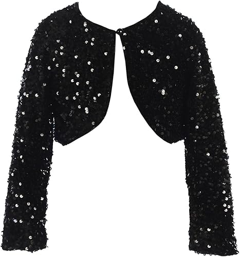 Shiny Sequin Long Sleeve Crop Top Cardigan for Girls (Ages 2-16)