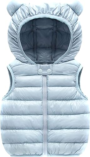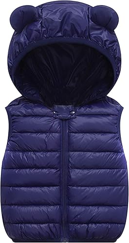 Boys Solid Color Hooded Down Vests Zipper Cute Puffer Vest