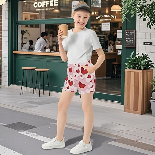 【Functional Design】Our shorts for girls come with practical pockets on both sides,providing ample space for storing small essentials.The mid-waist design with a wide elastic band ensures a secure fit without squeezing the belly,making these girl shorts an ideal choice for active play