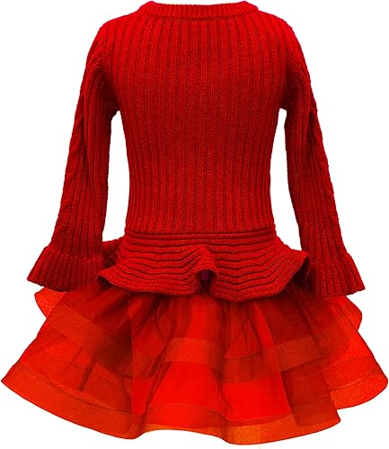 COZY COMFORT: The chunky cable knit sweater dress keeps your little one warm and stylish during chilly days with an adorable tutu skirt and layered horsehair for extra volume.