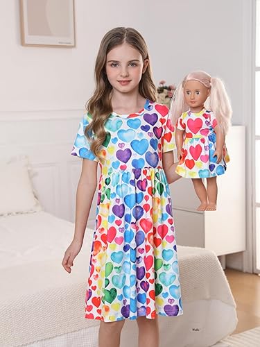 Gift for both girl and 18 inch American dolls. The two dresses feature in adorable matching patterns.It is perfect for girls and American girl dolls.
