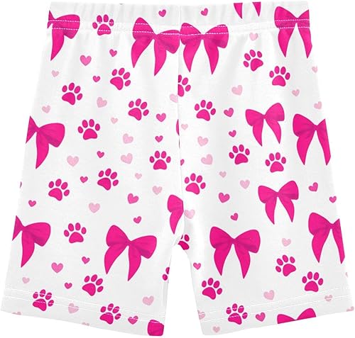 Bow Paw Heart Pink Girls Bike Shorts Toddler Soft Cotton Cartwheel Under Dress Dance Shorts(Multi-bow Paw Heart Pink,6 Years)