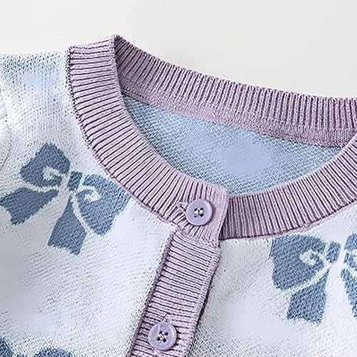 Bowknot Embroidered Cardigan for Toddler Girls Knit Sweater Lightweight Mesh Shirts Kids Long Sleeve Button Up Jacket(Purple,12-24 Months)