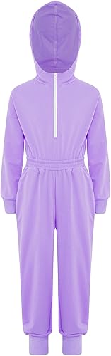 Boys Girls Casual Hoodie Jumpsuit Kids Zip Front Long Sleeve Elastic Waist One Piece Rompers with Pockets Lavender 8 Years