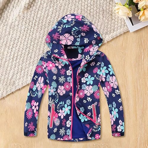 Boys Girls Rain Jackets Kids Print Waterproof Hooded Thick fleece Raincoats Lightweight Windbreakers Raincoat 3-12 Years(Dark Blue,3-4T)