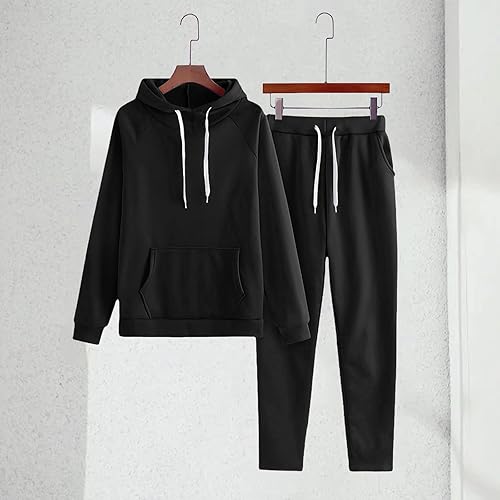 Boys Girls Sweatsuit 2 Piece Outfits Hoodie Sweatshirts Outfits Jogger Sweatpants & Hooded Sweatshirt (Black, 5-6 Years)
