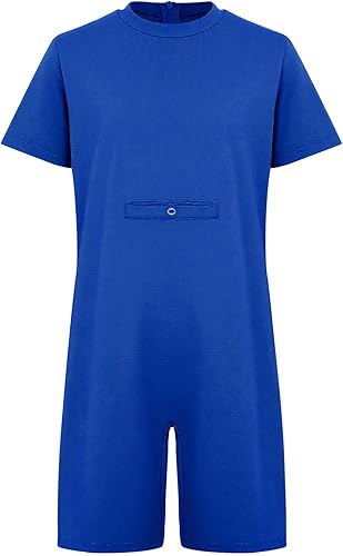 Boys Girls Wide Leg Short Rompers High Waist One Piece Special Needs Adaptive Clothing Solid Jumpsuits(Royal Blue,10 Years)