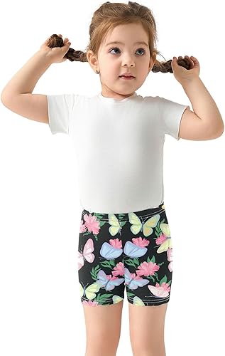 Butterflies Black Girls Bike Shorts Toddler Soft Cotton Active Biker Shorts(Multi-butterflies Black,4T)