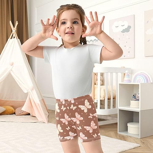 Butterflies Brown Girls Bike Shorts Toddler Soft Cotton Under Dress Cartwheel Shorts(Multi-butterflies Brown,10 Years)