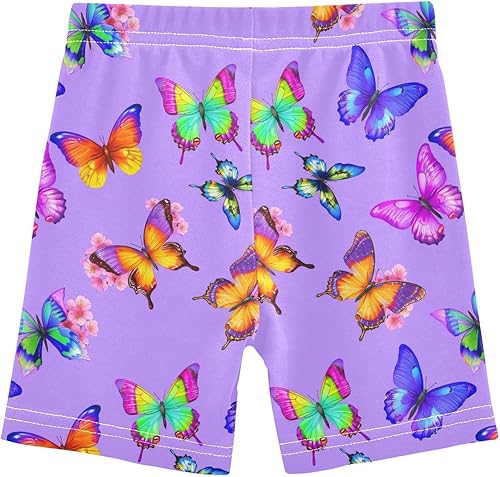 Butterflies Purple Girls Bike Shorts Toddler Soft Cotton Under Dress Dance Shorts(Multi-butterflies Purple,10 Years)