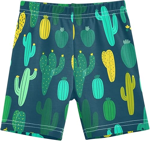 Cactus Blue Girls Bike Shorts Toddler Soft Cotton Under Dress Cartwheel Shorts(Multi-cactus Blue,10 Years)