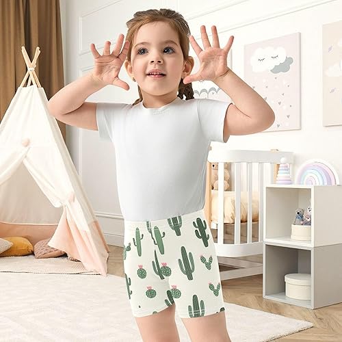 Cactus Green Girls Bike Shorts Toddler Soft Cotton Active Under Dress Shorts(Multi-cactus Green,6 Years)