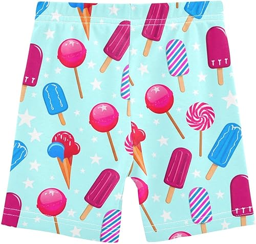 Candy Ice Cream Blue Girls Bike Shorts Toddler Soft Cotton Active Under Dress Shorts(Multi-candy Ice Cream Blue,5T)