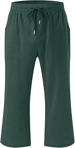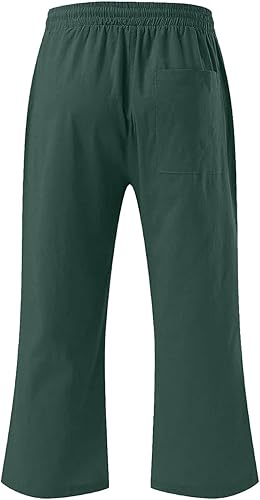 Capri Pants for Girl Casual 2025 Summer Pant Linen Pants Drawstring Elastic High Waist Pant Wide Leg Cropped Trouser(Cc2-green,5-6 Years)