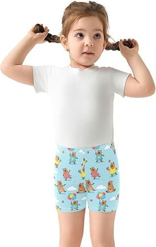 Capybara Clouds Blue Girls Bike Shorts Toddler Soft Cotton Active Biker Shorts(Multi-capybara Clouds Blue,10 Years)