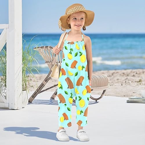 Capybara Lemon Leaves Toddler Girls Jumpsuit Romper One-Piece Overalls Summer Clothes Pants for Girls,1T(1T)