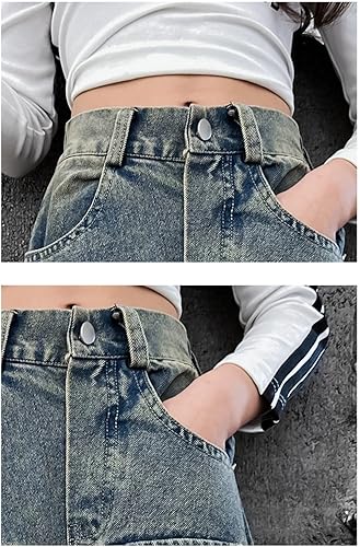 Cargo Denim Jeans for Kids Straight Wide Leg Baggy Jeans for Girls Boys Casual Washed Black Trousers Hiphop(Blue,13-14 Years)
