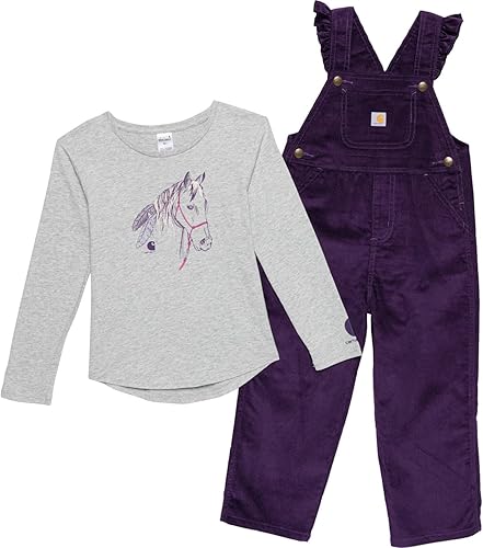 Carhartt Toddler Girls 9863 2 piece set: Long Sleeve Shirt and Overall Set, Crown Jewel - 2 Toddler