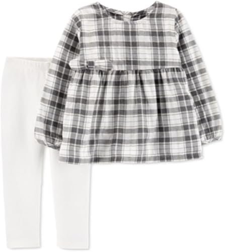 Carter's Girls' 2-Piece Pullover & Legging Set (4T, White/Gray/Plaid Twill)