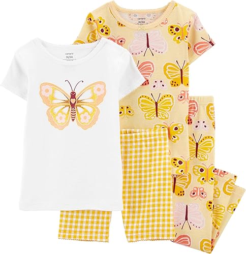 Carter's Toddler Girls 4pc Cotton Snug Pajamas PJs Set (Yellow/Butterfly, 5T)