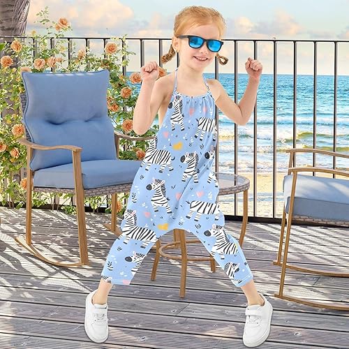 Cartoon Zebras Toddler Girl Clothes Sleeveless Romper Jumpsuit for Girls Summer One Piece Romper Pants Size 1-6T(Multicolor,1T)
