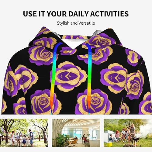 Features: A classic kangaroo pocket in the front, providing convenient storage for your essentials like phones and keys. The adjustable colorful drawstring hood adds a fun, personalized touch to your casual style