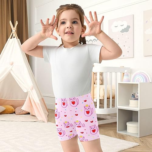 Cats Heart Pink Girls Bike Shorts Toddler Soft Cotton Under Dress Cartwheel Shorts(Multi-cats Heart Pink,5T)