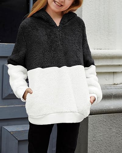 Functional & Stylish Winter Design: eaturing a 1/3 zip-up collar for adjustable coverage, two spacious side pockets to warm little hands, and a slouchy oversized fit for freedom of movement. The attached hood provides extra protection against cold winds, while the trendy color-block design adds a fashionable touch.