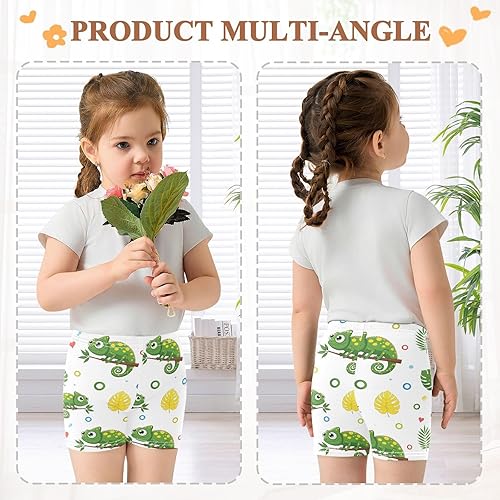 Chameleon Leaf White Girls Bike Shorts Toddler Soft Cotton Active Under Dress Shorts(Multi-chameleon Leaf White,5T)